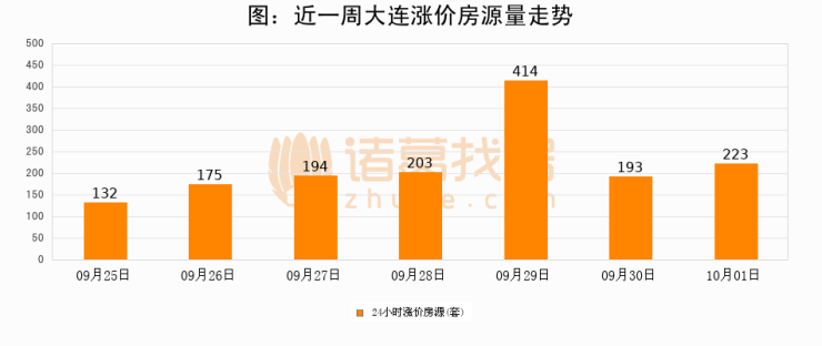 根据诸葛找房数据显示,大连24小时涨价房源量为223套,较09月30日增加30套,环比上涨15.5%。与此同时,涨价房源占比小幅扩大,业主信心有所提升。