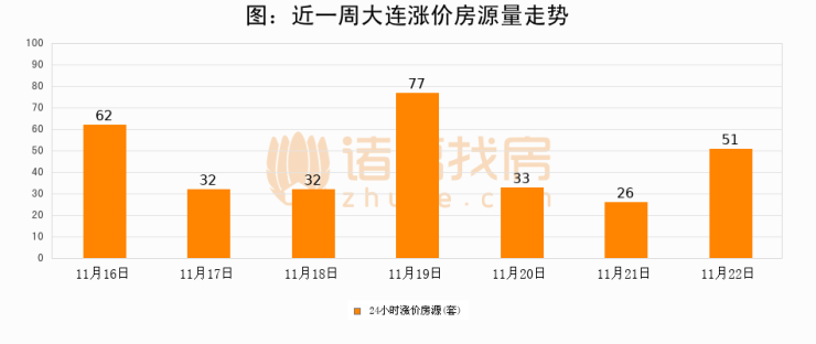 根据诸葛找房数据显示,大连24小时涨价房源量为51套,较11月21日增加25套,环比上涨96.2%。与此同时,涨价房源占比小幅扩大,业主信心有所提升。