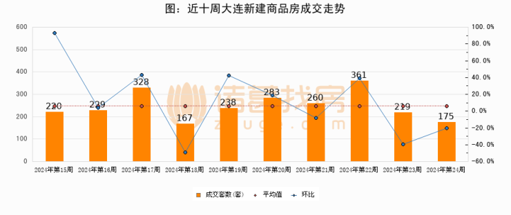 【大连成交周报】第24周新房成交175套,二手房705套,涨价房源304套