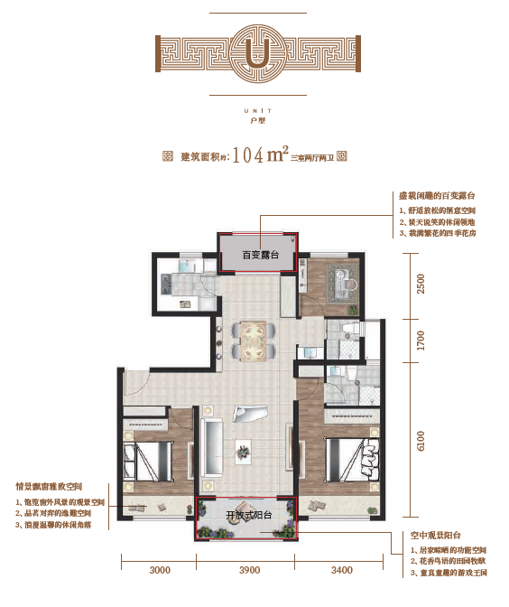 ·户型布局合理,功能齐全;赠送面积大,飘窗、阳台、百变露台,赋予生活更多乐趣