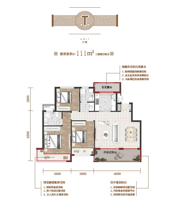 建面约111㎡ 三室两厅两位